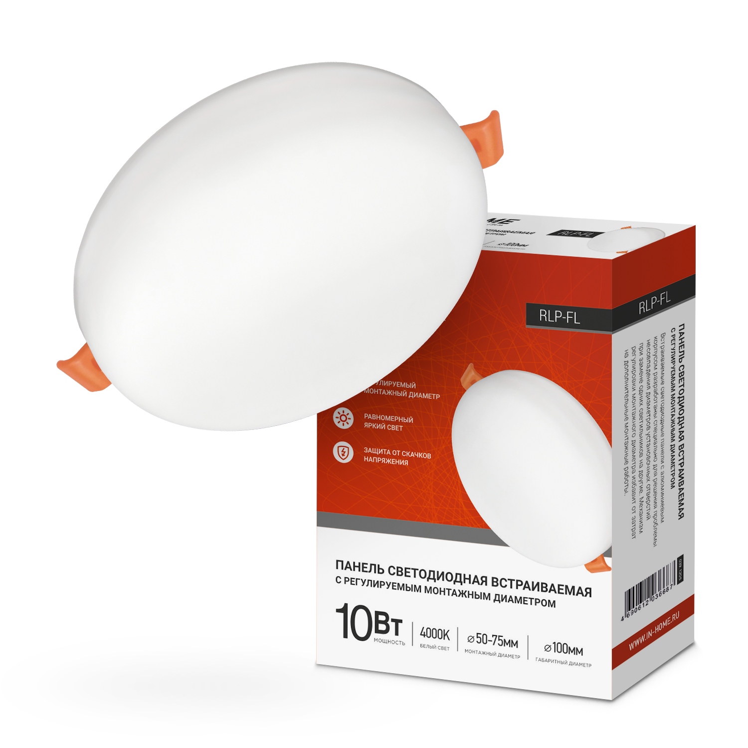 Панель светодиодная встраиваемая безрамочная RLP-FL 10Вт 230В 4000К 900Лм 100мм с регулируемым монтажом 45-80мм белая IP20 IN HOME