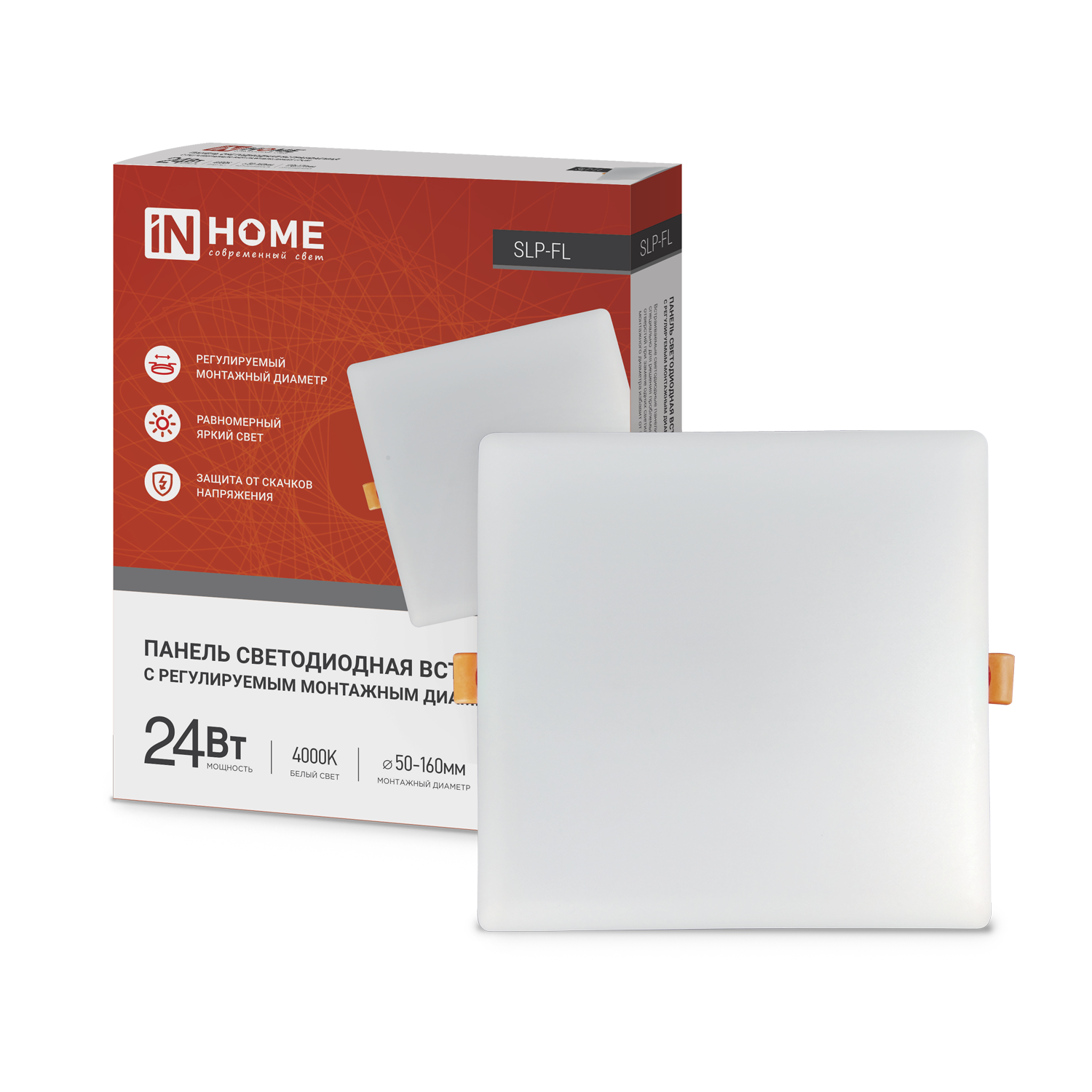 Панель светодиодная встраиваемая безрамочная SLP-FL 24Вт 230В 4000К 2160Лм 172мм с регулируемым монтажом 45-140мм белая IP20 IN HOME