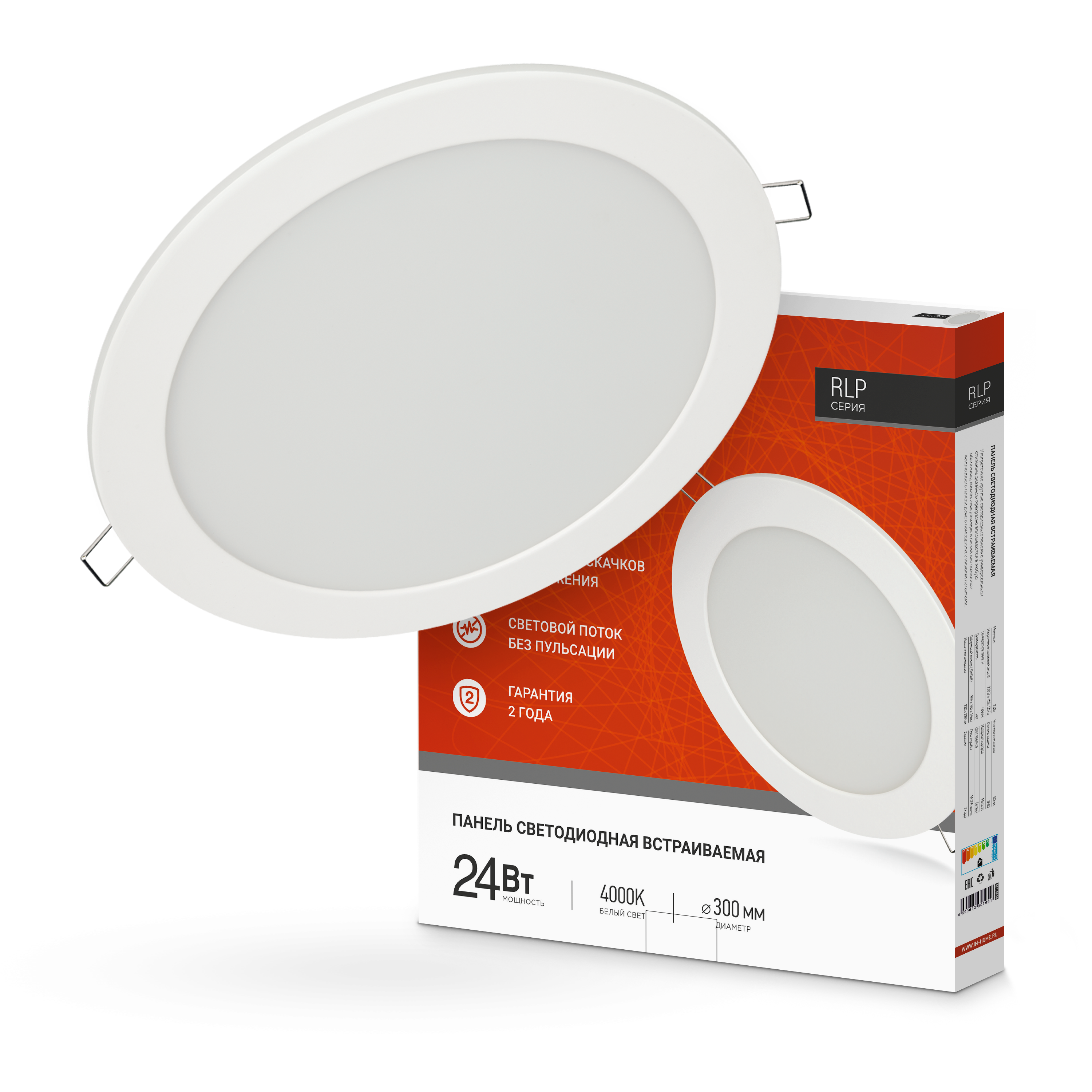 Панель светодиодная встраиваемая круглая RLP 24Вт 230В 4000К 1440Лм 300мм белая IP40 IN HOME