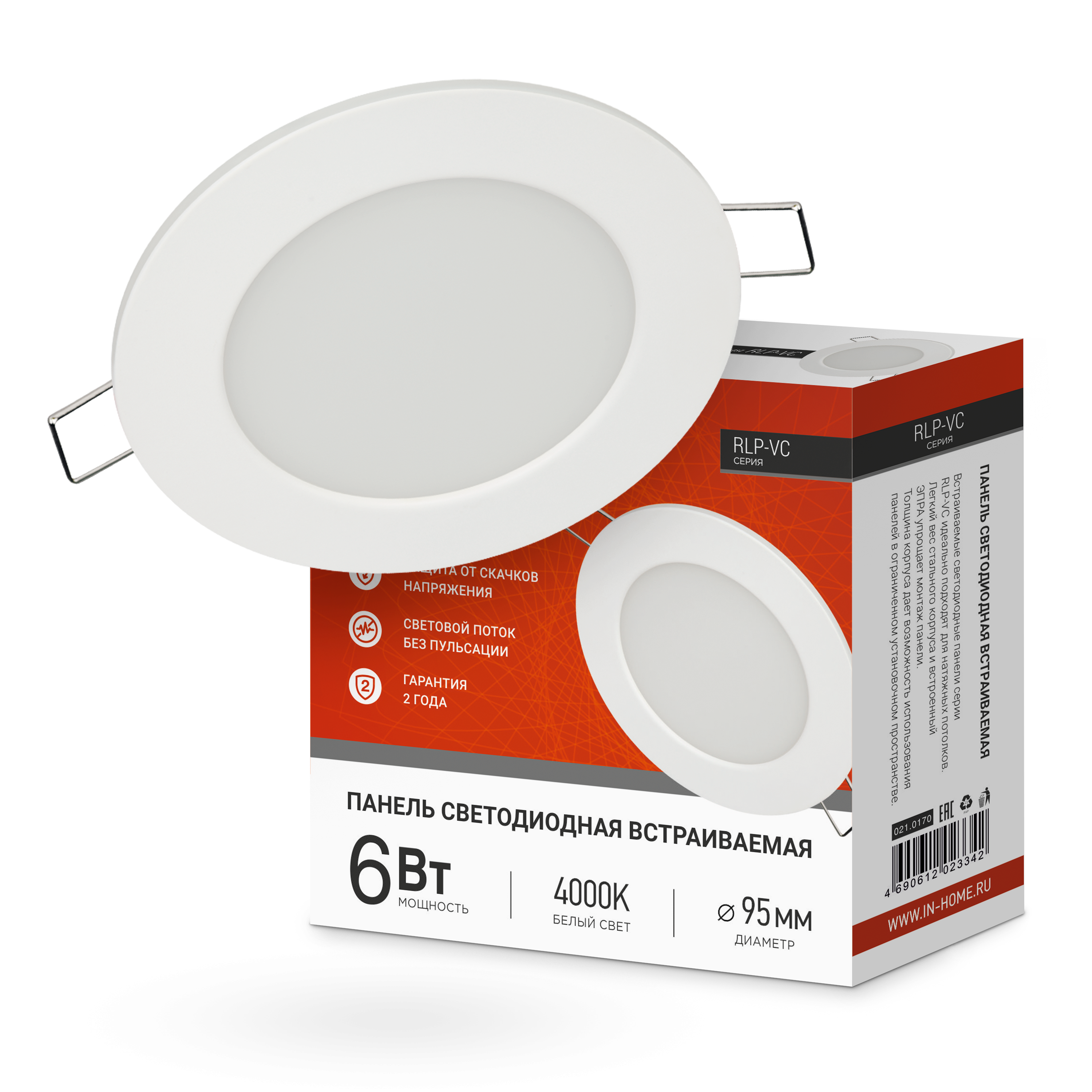 Панель светодиодная встраиваемая круглая RLP-VC 640WH 6Вт 230В 4000К 420Лм 95мм белая IP40 IN HOME