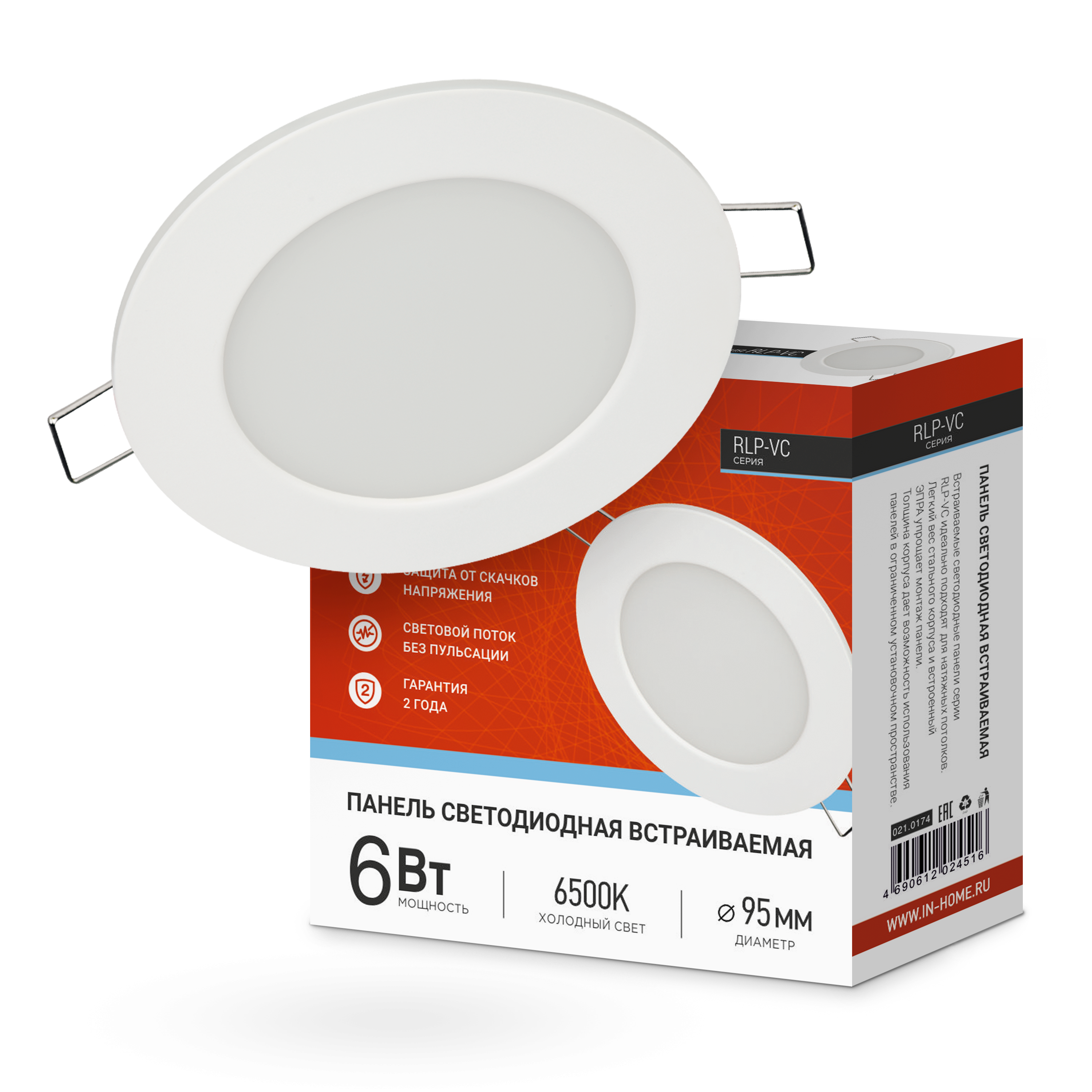 Панель светодиодная встраиваемая круглая RLP-VC 665WH 6Вт 230В 6500К 420Лм 95мм белая IP40 IN HOME