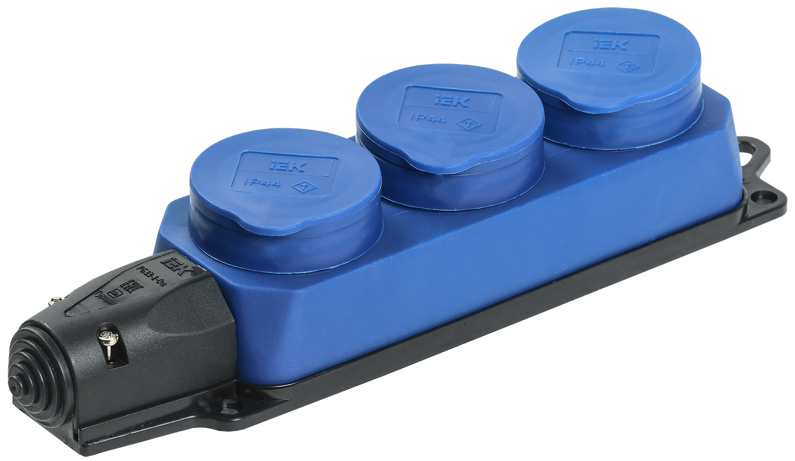 РБ33-1-0м Розетка тройная ОМЕГА IP44 синяя IEK