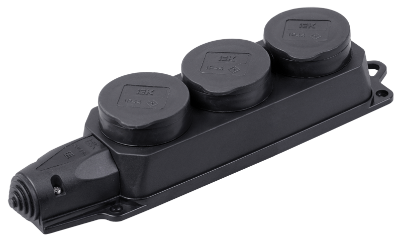 Розетка ОМЕГА IEK РБ33-1-0м трехместная с защитными крышками IP44