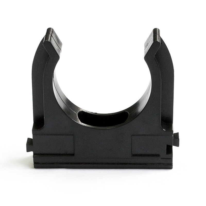 Крепеж-клипса для труб 32 мм черная — монтажный элемент для надежной фиксации гофрированных и гладких труб при прокладке инженерных и электрических коммуникаций.