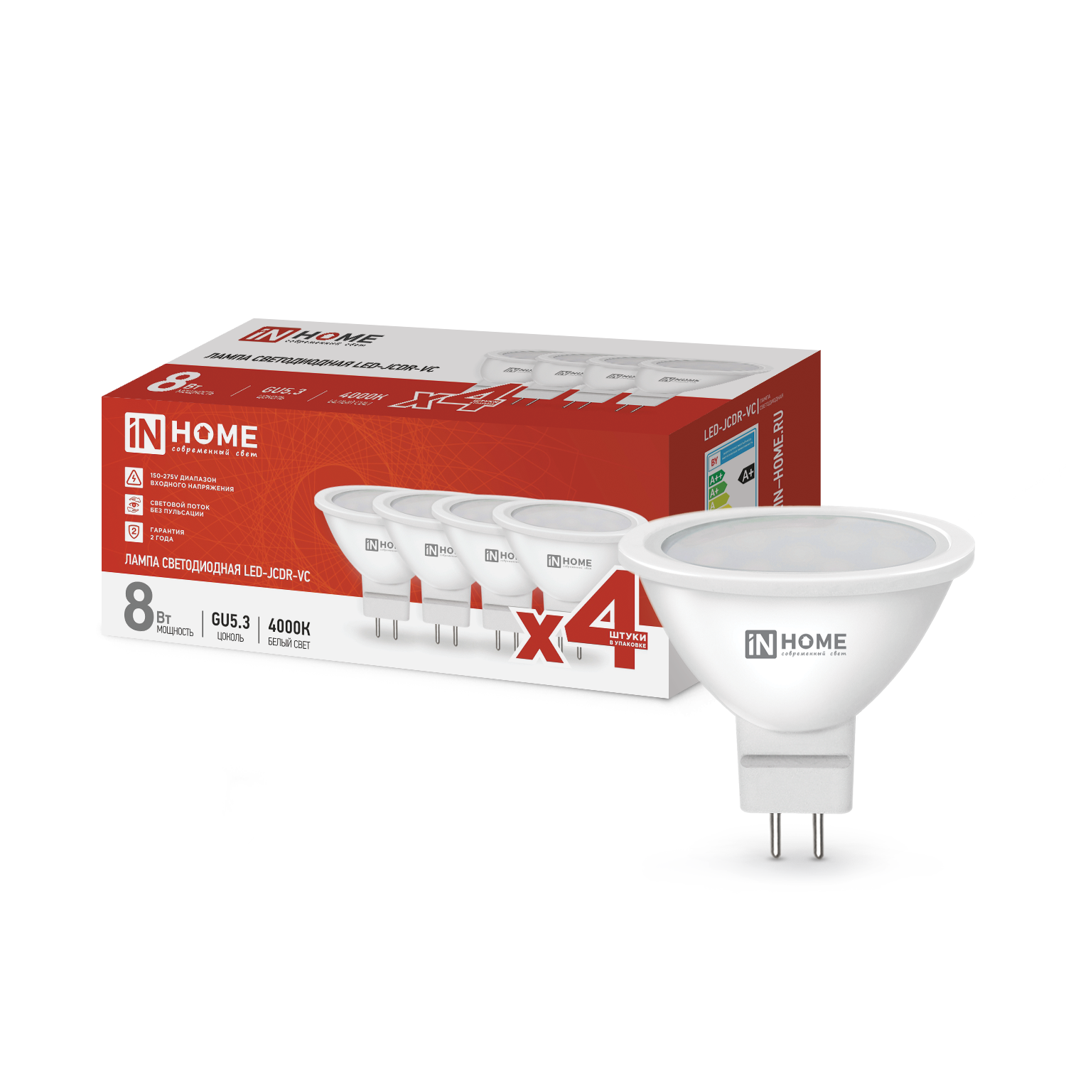 Лампа светодиодная LED-JCDR-VC 4PACK 8Вт 230В GU5.3 4000К 720Лм (4шт./упак) IN HOME