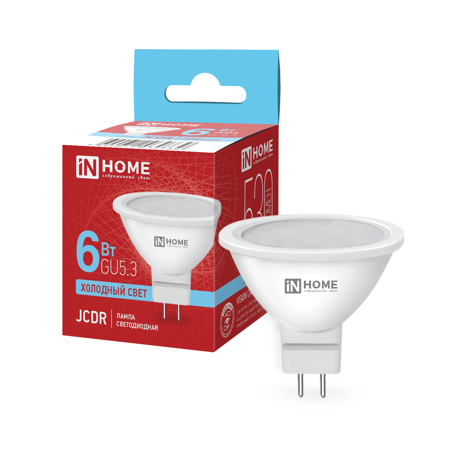 Лампа светодиодная LED-JCDR-VC 6Вт 230В GU5.3 6500К 530Лм IN HOME