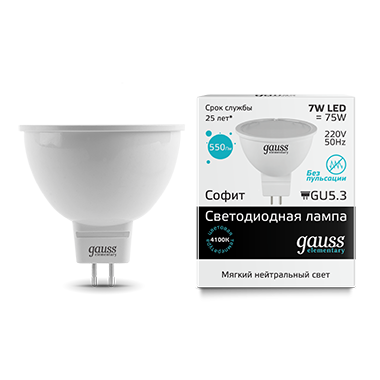 Лампа светодиодная LED-MR16 GU5.3 7Вт 4100K 550Лм Elementary GAUSS