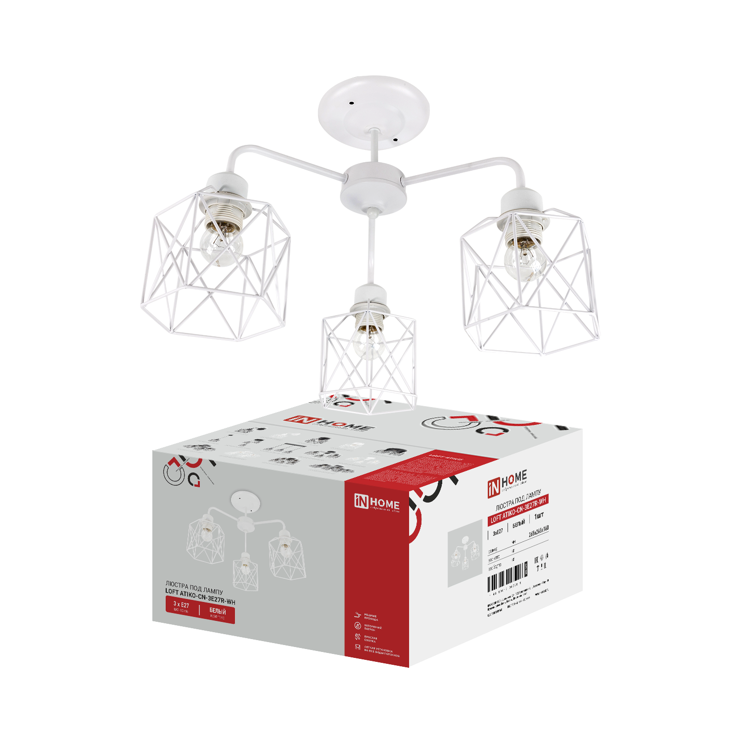 Люстра под лампу LOFT ATIKO-СN-3E27R-WH 3хЕ27 белый IN HOME