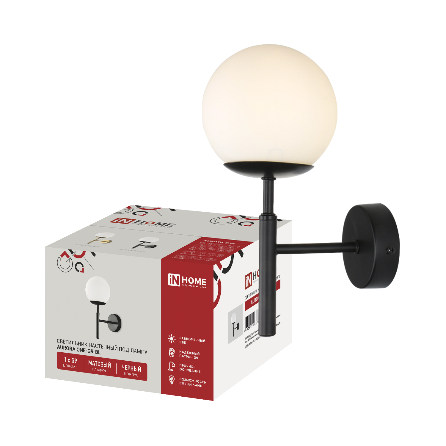 Светильник настенный под лампу AURORA ONE-G9-BL 1хG9 матовый плафон, черный корпус IN HOME