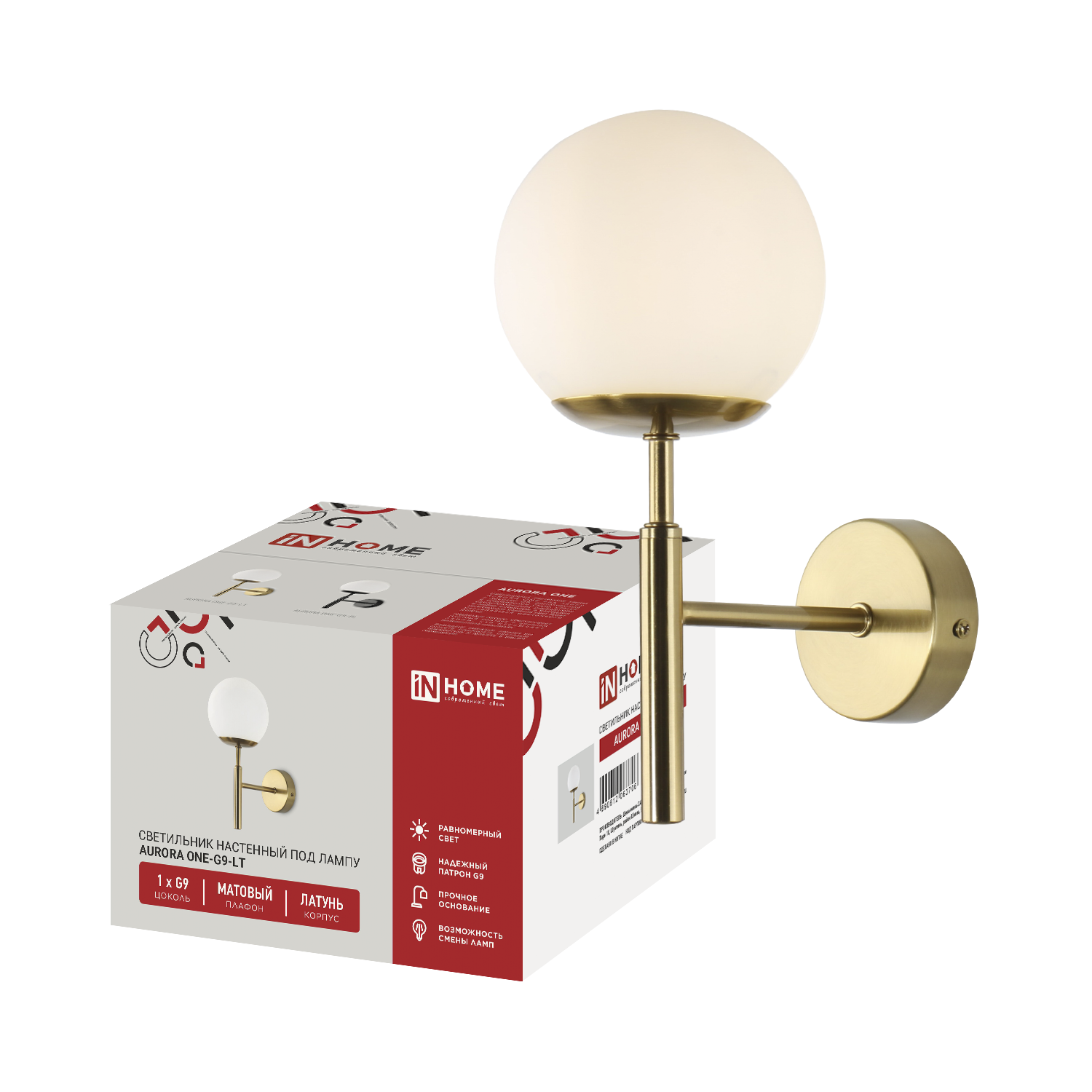 Светильник настенный под лампу AURORA ONE-G9-LT 1хG9 матовый плафон, латунный корпус IN HOME