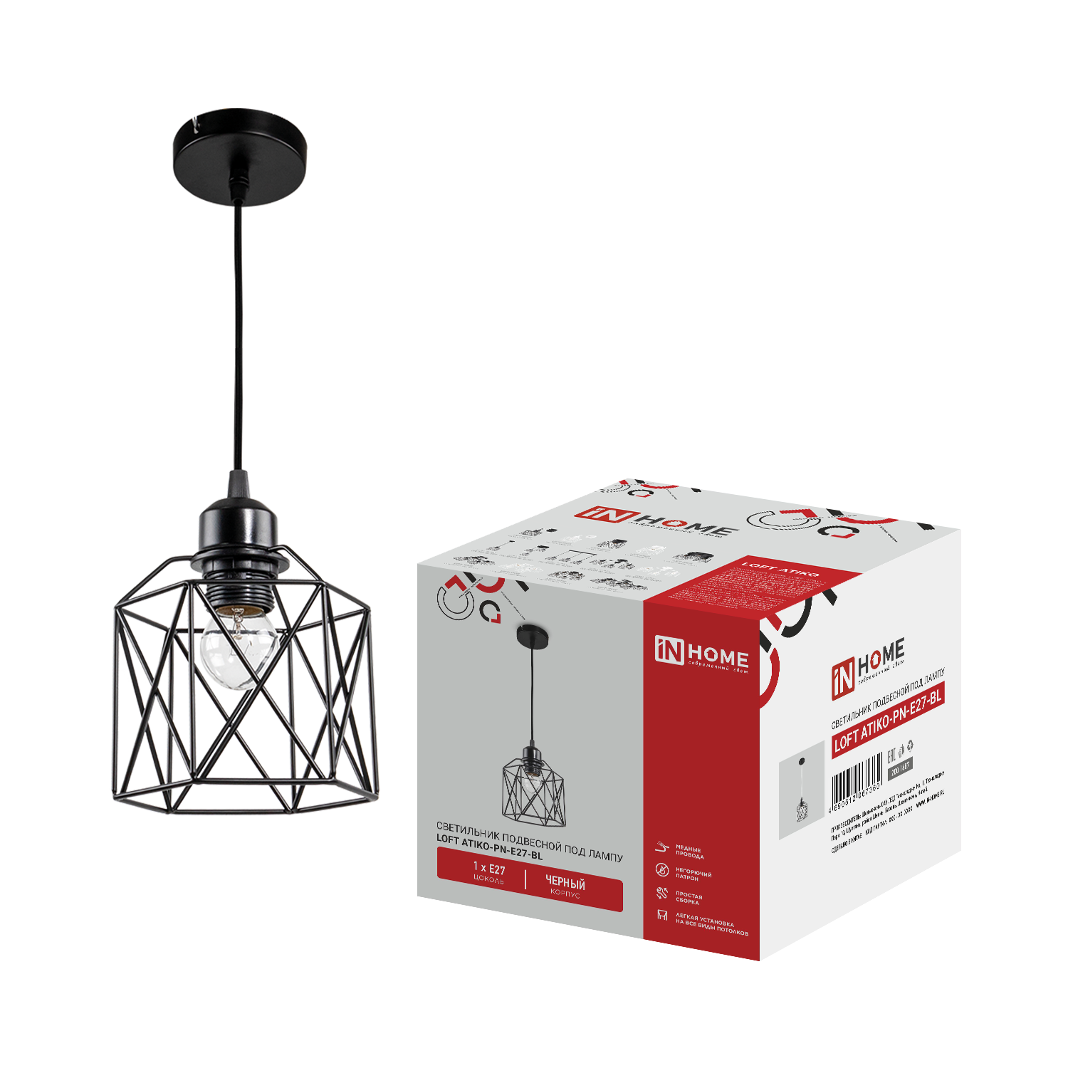 Светильник подвесной под лампу LOFT ATIKO-PN-E27-BL Е27 подвес 1м черный IN HOME