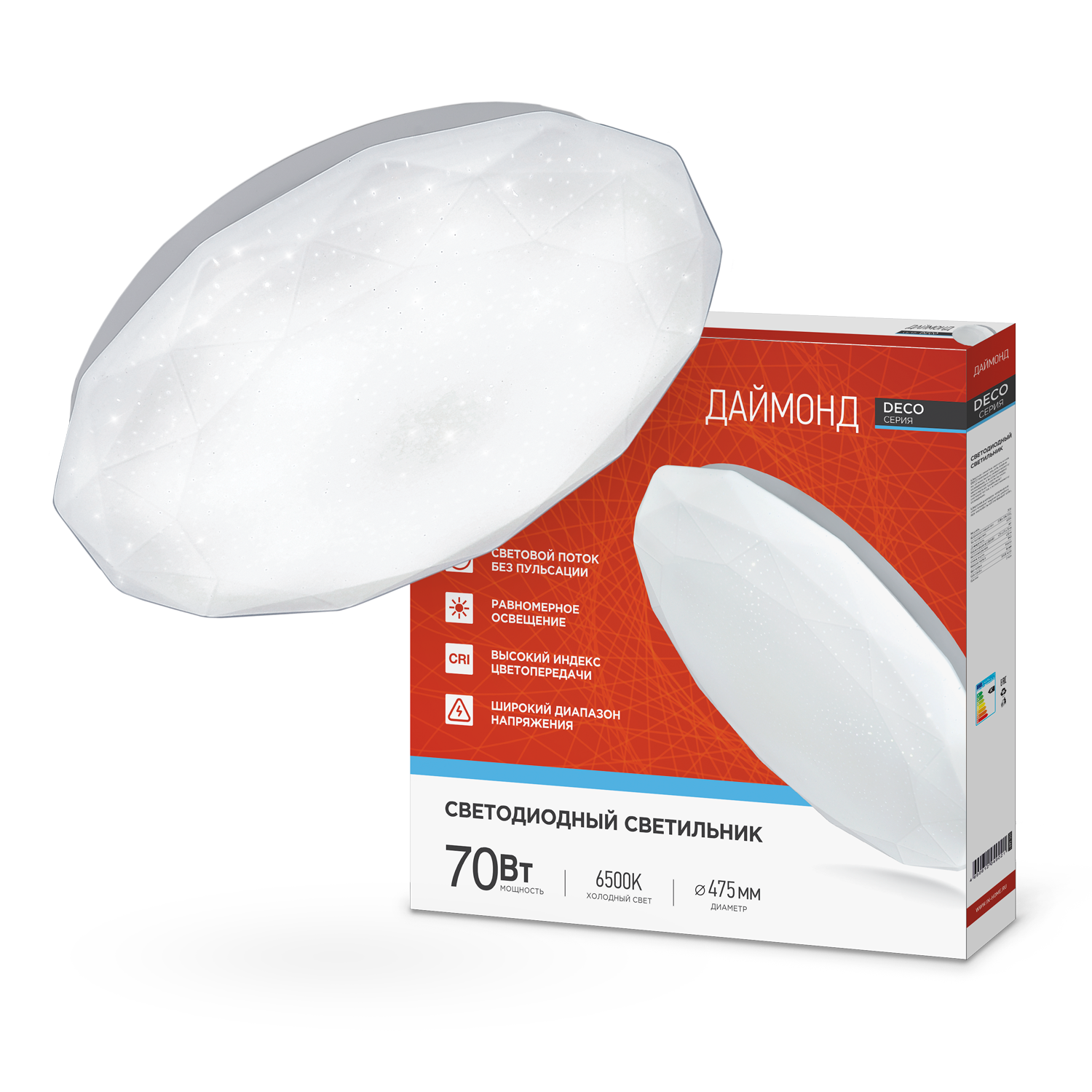 Светильник светодиодный серии DECO ДАЙМОНД 70Вт 230В 6500К 6300Лм 496х85мм IN HOME
