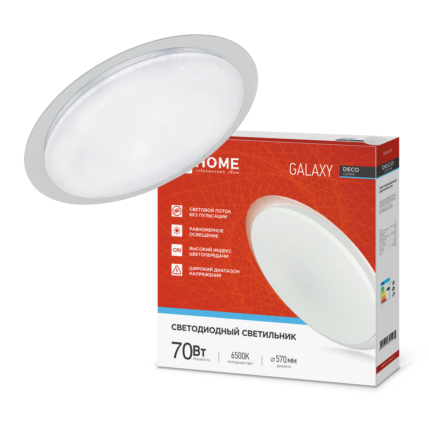 Светильник светодиодный серии DECO GALAXY 70Вт 230В 6500К 6300Лм 570х83мм IN HOME