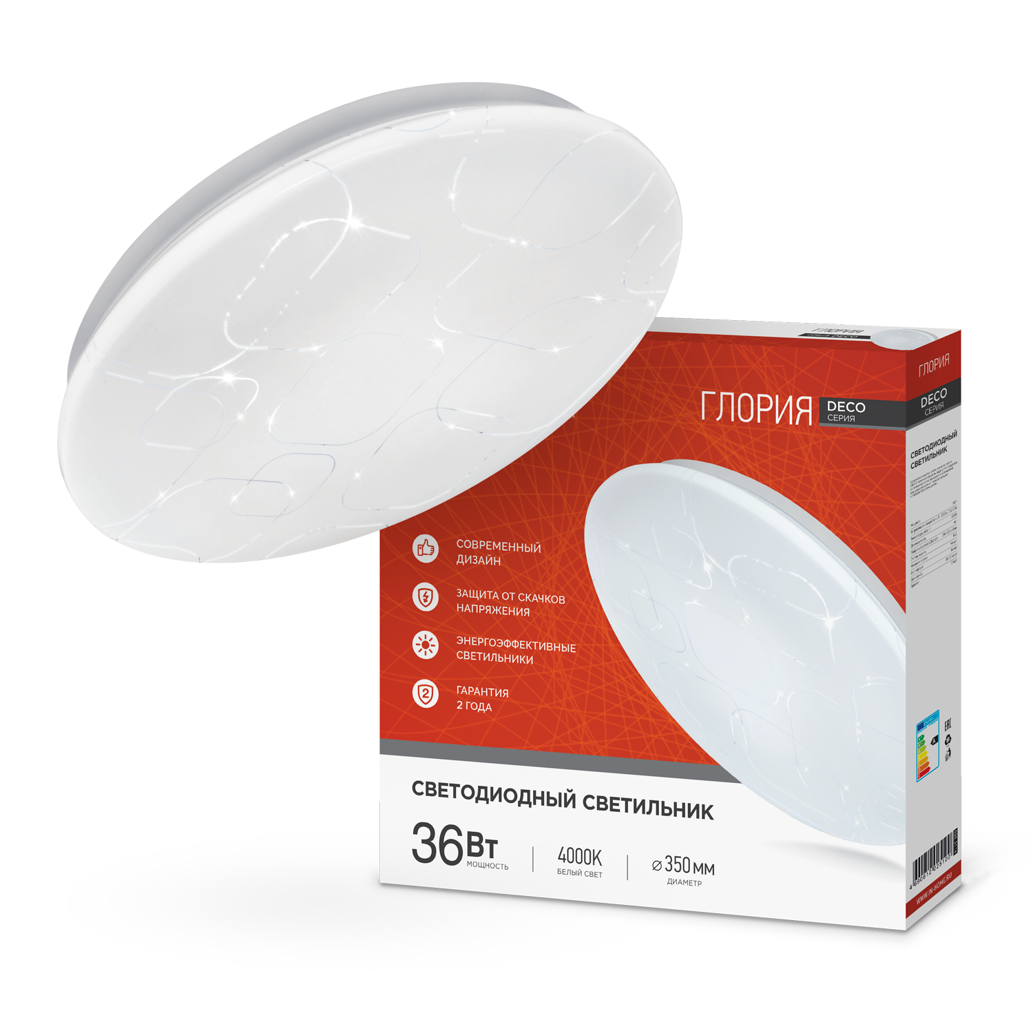 Светильник светодиодный серии DECO ГЛОРИЯ 36Вт 230В 4000К 3240Лм 380х55мм IN HOME