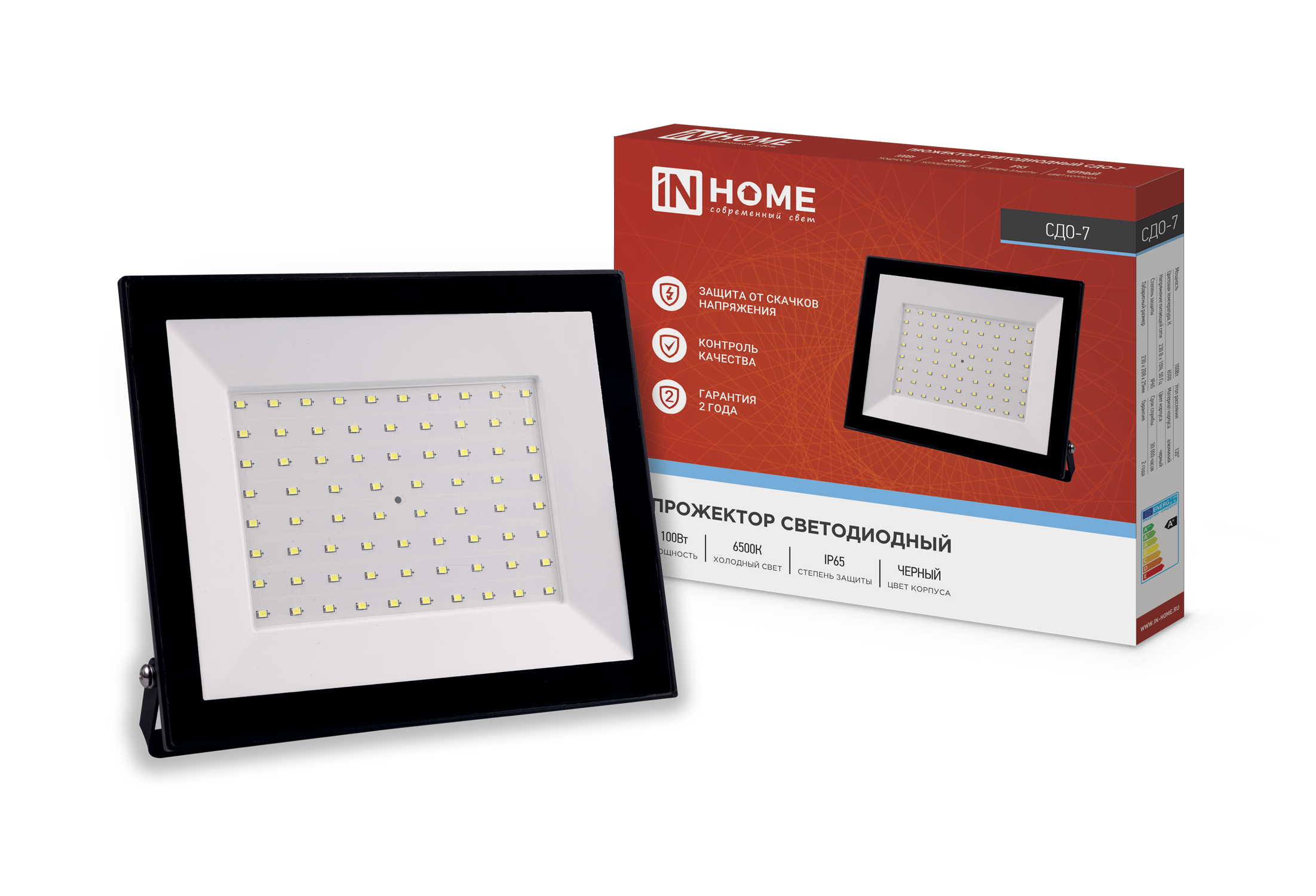 Прожектор светодиодный СДО-7 100Вт 230В 6500К IP65 черный IN HOME