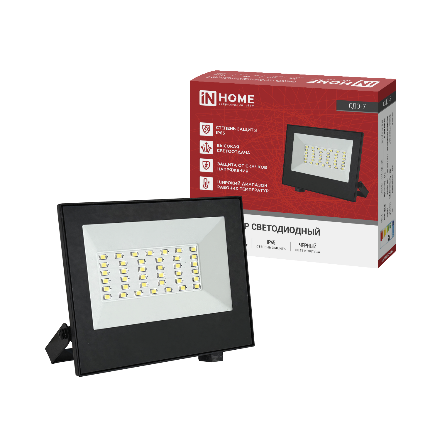 Прожектор светодиодный СДО-7 50Вт IN HOME — универсальное решение для наружного и внутреннего освещения различных объектов. Подходит для подсветки фасадов зданий, дворовых территорий, рекламных конструкций, складов, производственных площадок и строительных объектов.