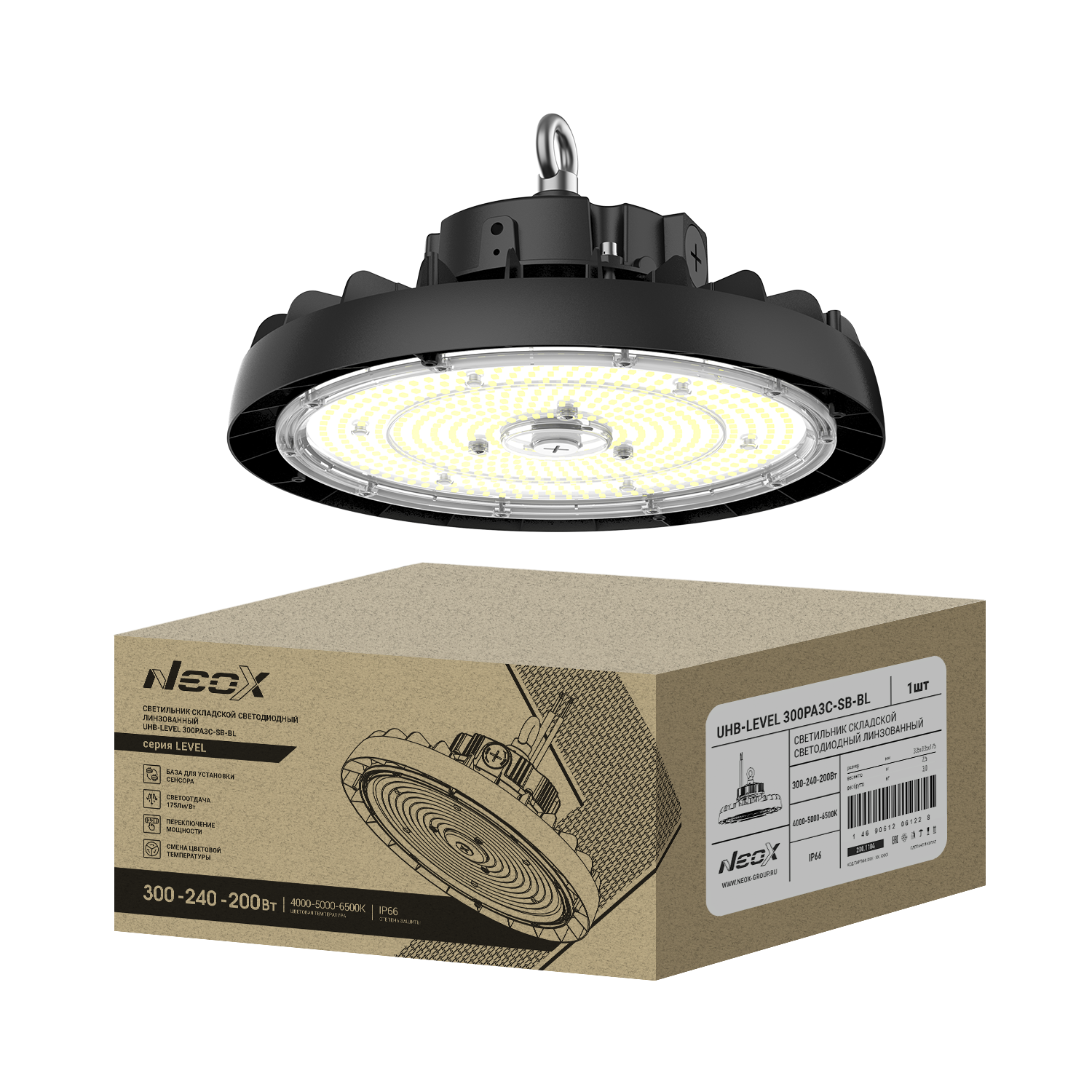 Светильник складской светодиодный UHB-LEVEL 300PA3C-SB-BL NEOX — высокомощное промышленное решение для освещения объектов с повышенными требованиями к надежности и эффективности.