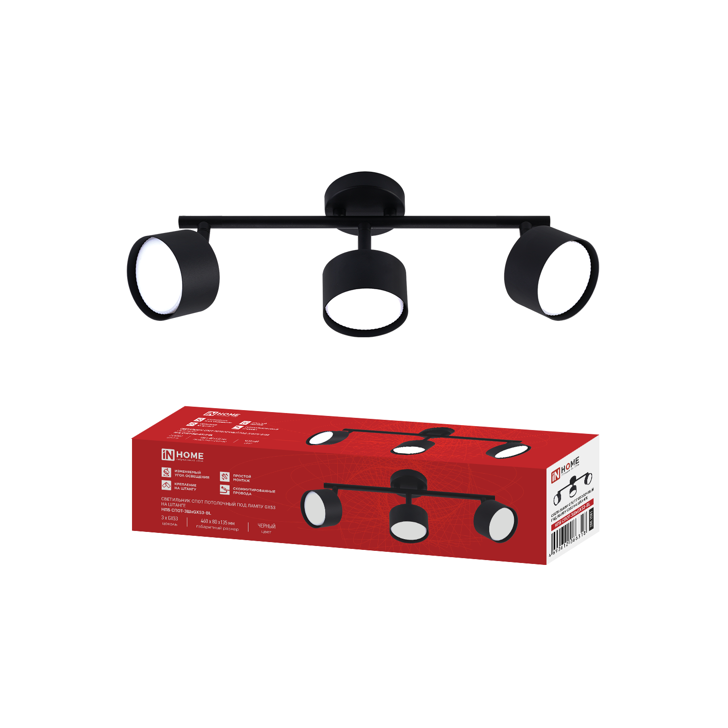 Светильник потолочный НПБ-СПОТ-GX53 2хSBM-NL-BL с подсветкой 220x80x90мм черный IN HOME в Чите
