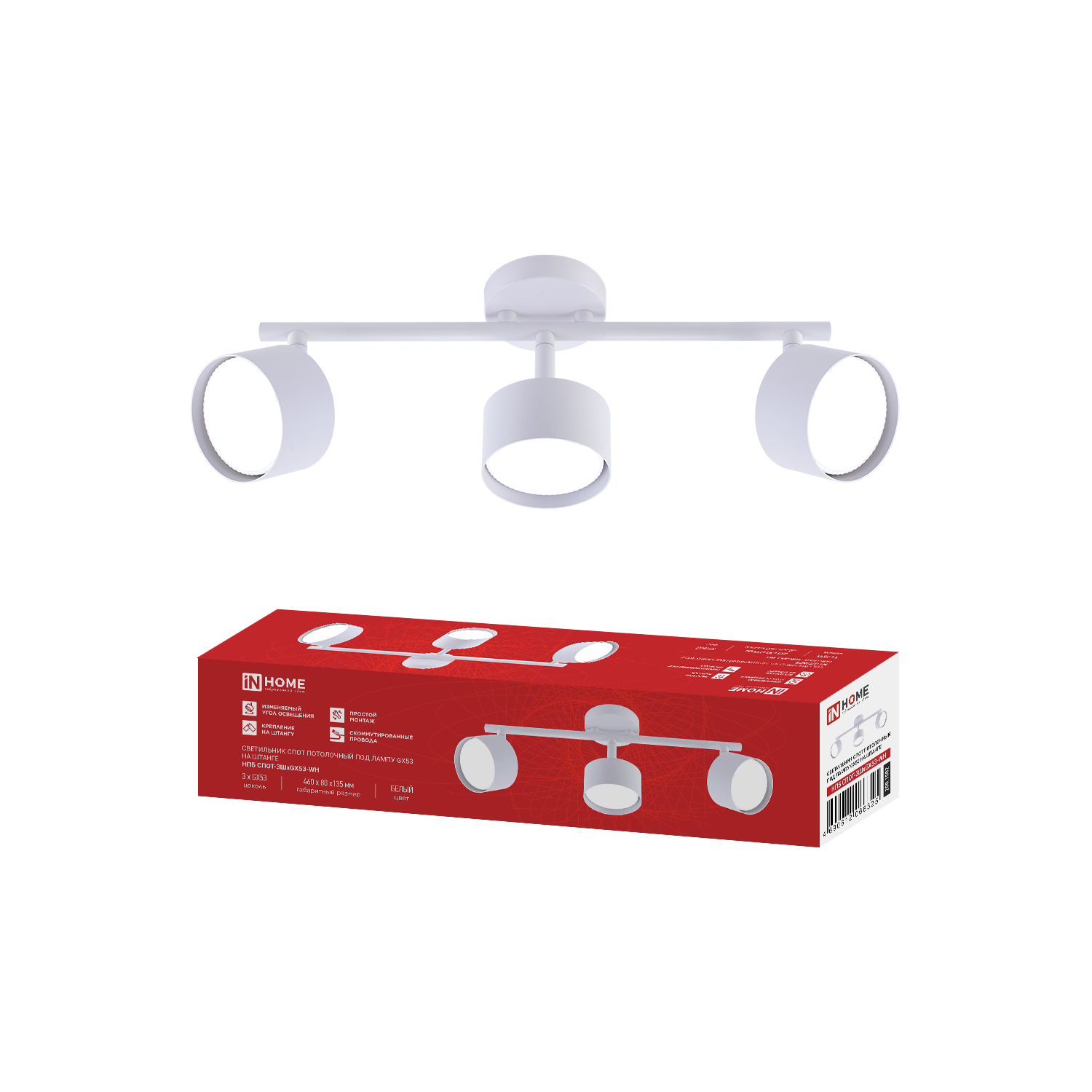 Светильник потолочный НПБ-СПОТ-GX53 3хSBM-NL-WH с подсветкой 380x80x90мм белый IN HOME