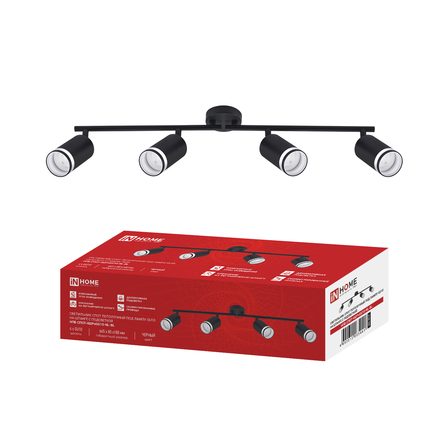 Светильник потолочный НПБ СПОТ-3RxGU10-AR-BL под GU10 с круглой базой черный IN HOME в Чите
