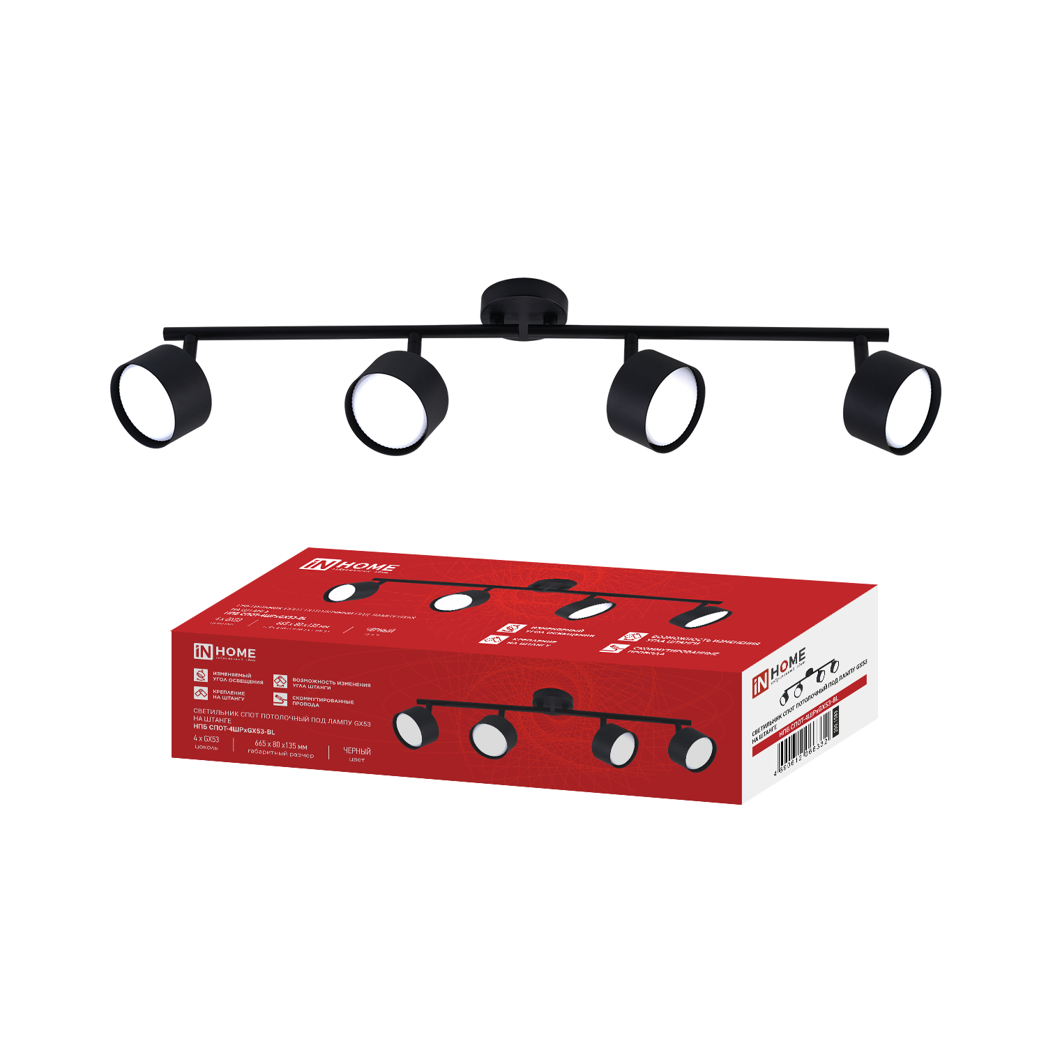 Светильник потолочный НПБ СПОТ-4xGU10-AR-BL под GU10 595x55x135мм черный IN HOME в Чите