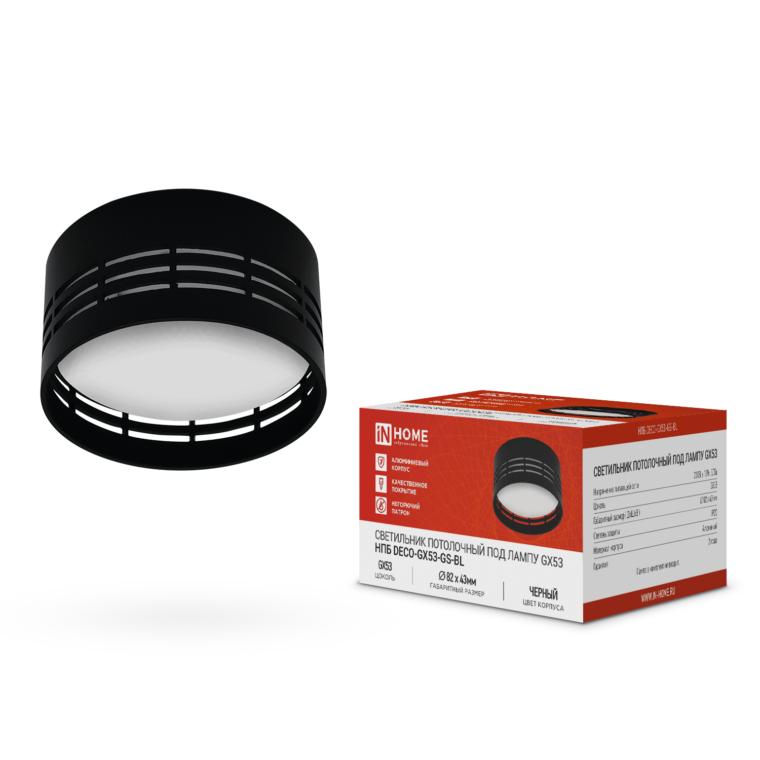 Светильник потолочный НПБ DECO-GX53-GS-BL под лампу GX53 82х43мм черный IN HOME