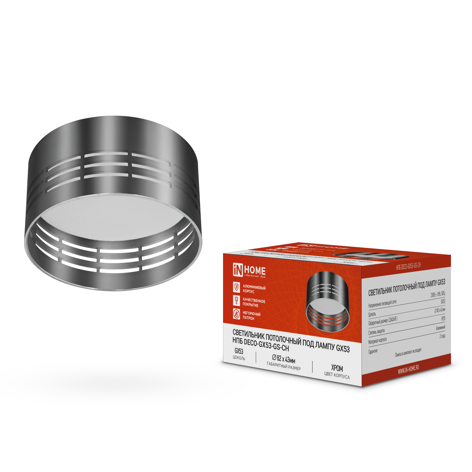 Светильник потолочный НПБ DECO-GX53-GS-CH под лампу GX53 82х43мм хром IN HOME