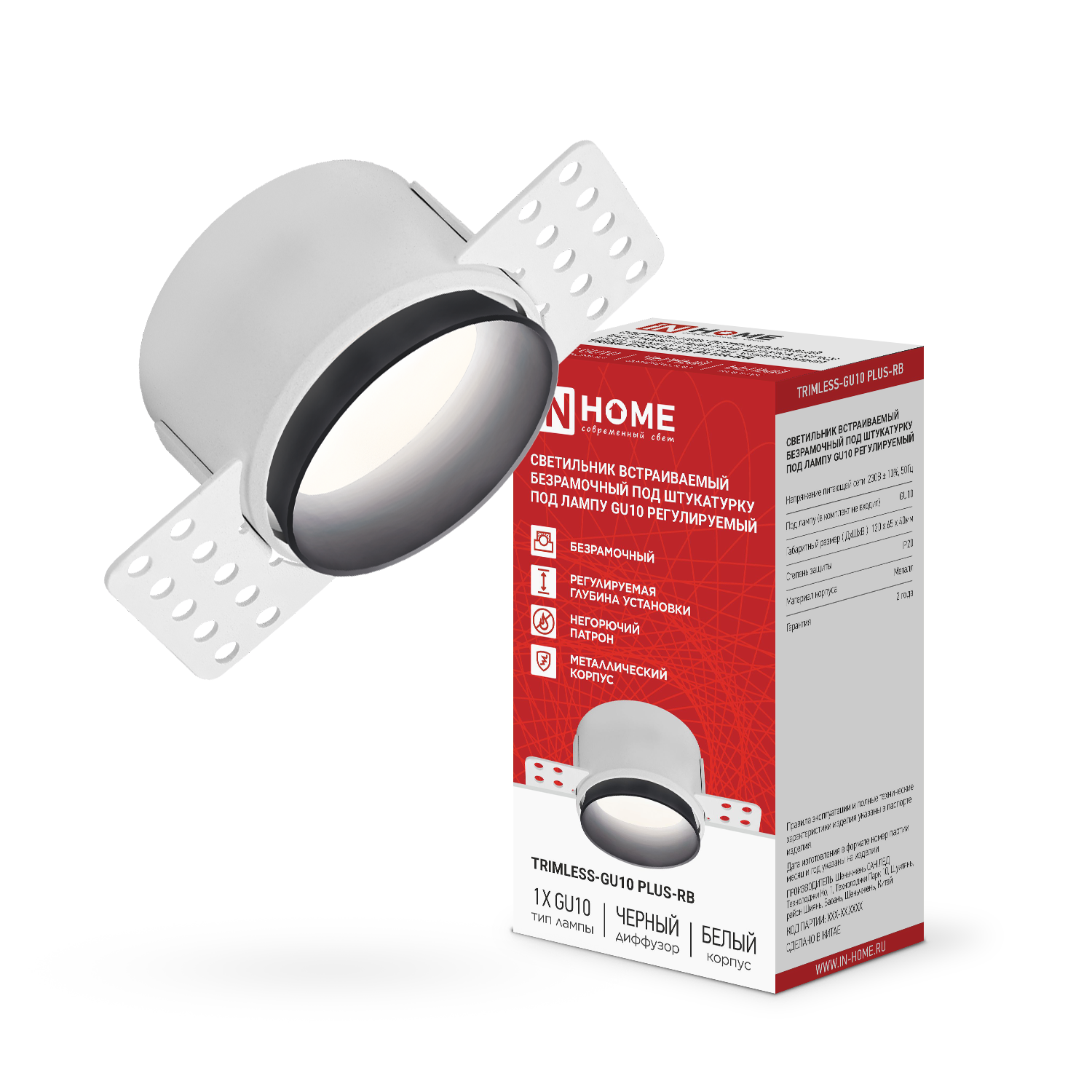 Светильник встраиваемый безрамочный под штукатурку TRIMLESS-GU10 PLUS-RB под лампу GU10 регулируемый черный IN HOME