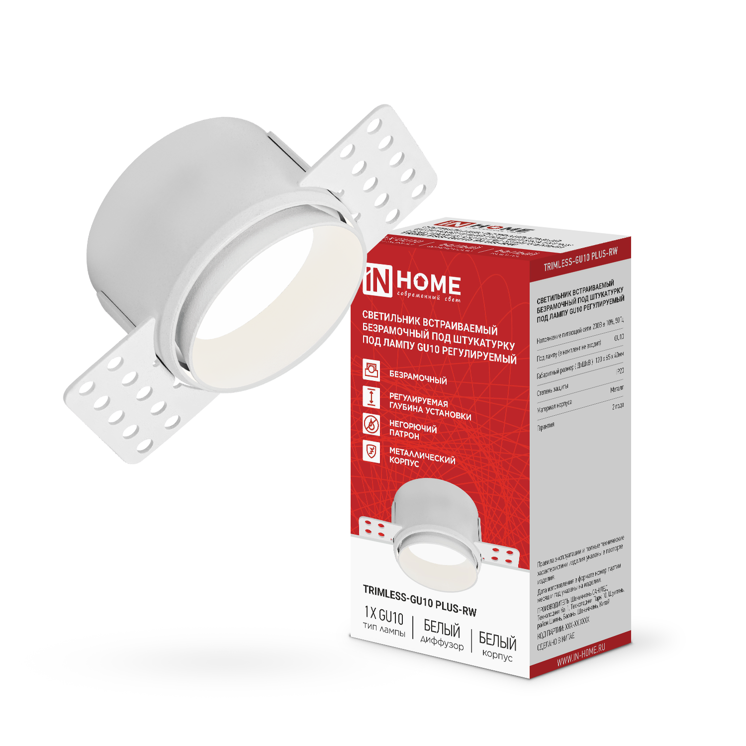 Светильник встраиваемый безрамочный под штукатурку TRIMLESS-GU10 PLUS-RW под лампу GU10 регулируемый белый IN HOME