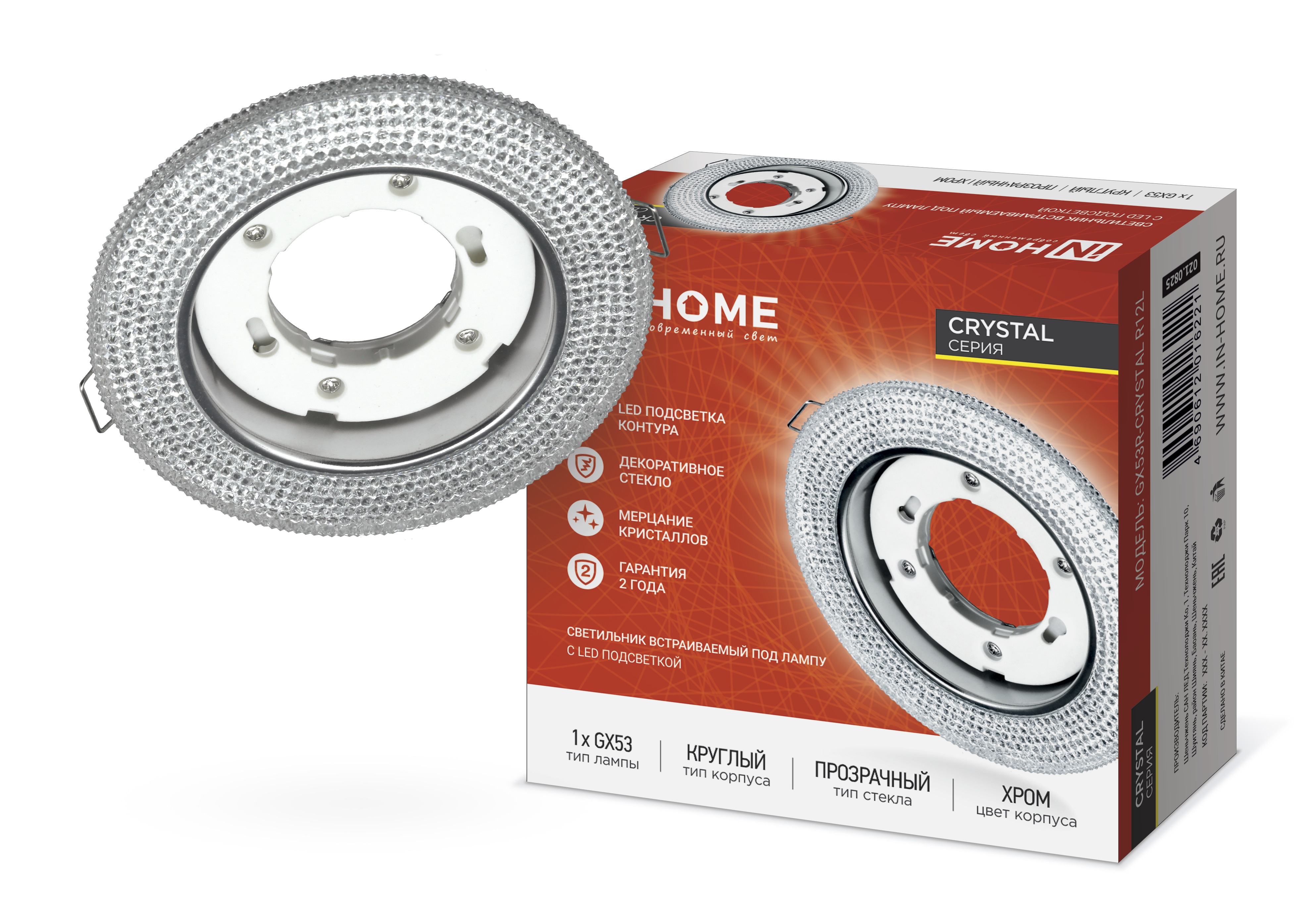 Светильник встраиваемый GX53R-crystal R12L с подсветкой 4К под лампу GX53 Прозрачный/Хром IN HOME