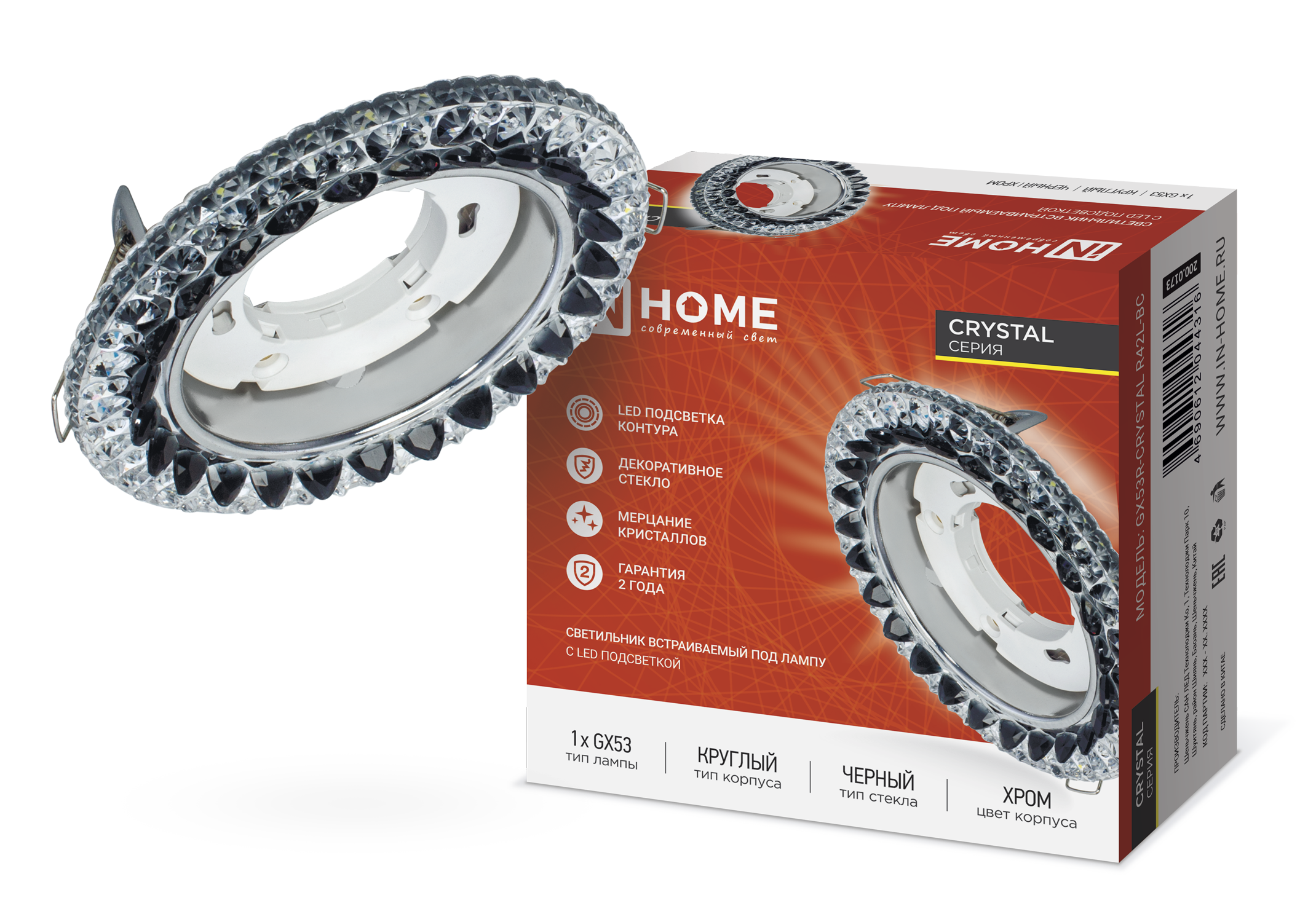 Светильник встраиваемый GX53R-crystal R42L-BC с подсветкой 4К под GX53 Черный/Хром IN HOME