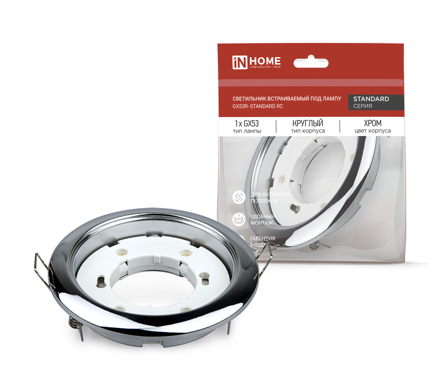 Светильник встраиваемый GX53R-standard RC металл под лампу GX53 230В хром IN HOME