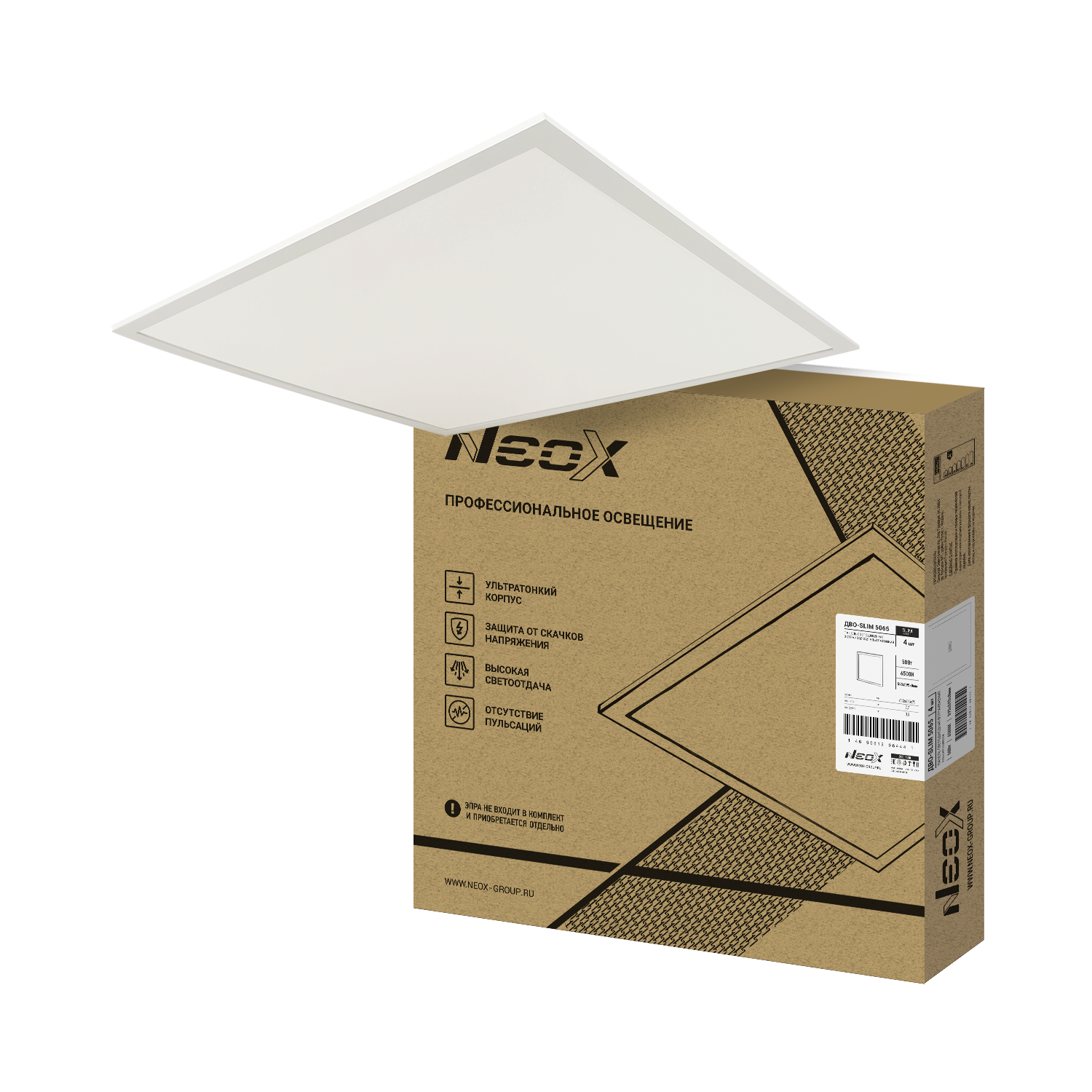 Панель светодиодная ультратонкая ДВО-SLIM 5065 50Вт 6500К без ЭПРА IP40 595х595х8,5мм NEOX