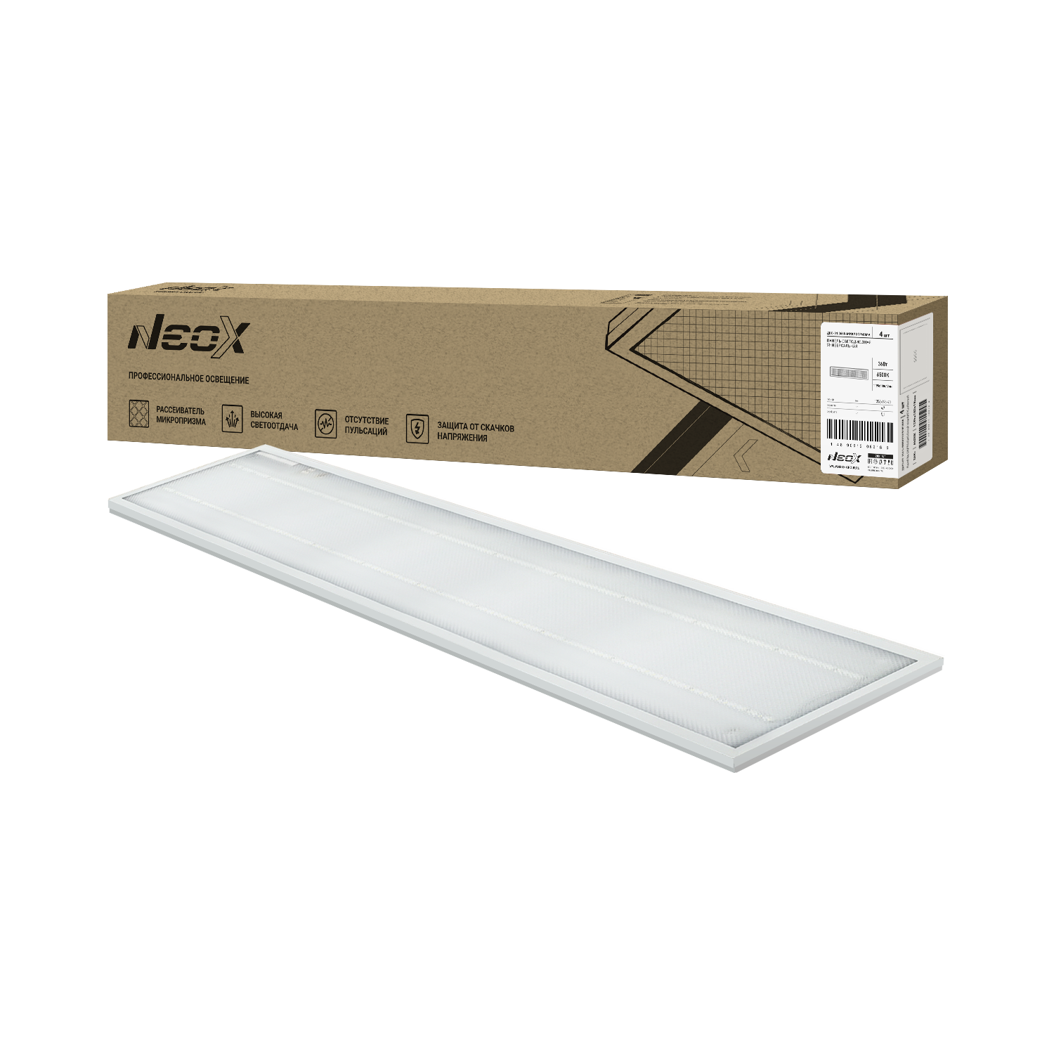 Панель светодиодная универсальная ДВО-01 3665-МИКРОПРИЗМА 36Вт 6500K IP40 1195x180х19мм белая NEOX