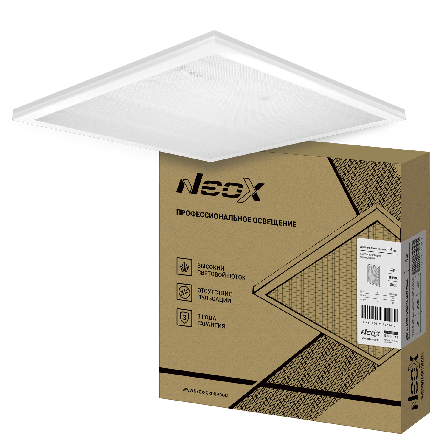 Панель светодиодная универсальная ДВО-02 4540-ПРИЗМА 45Вт 4000К IP40 595х595х15мм NEOX