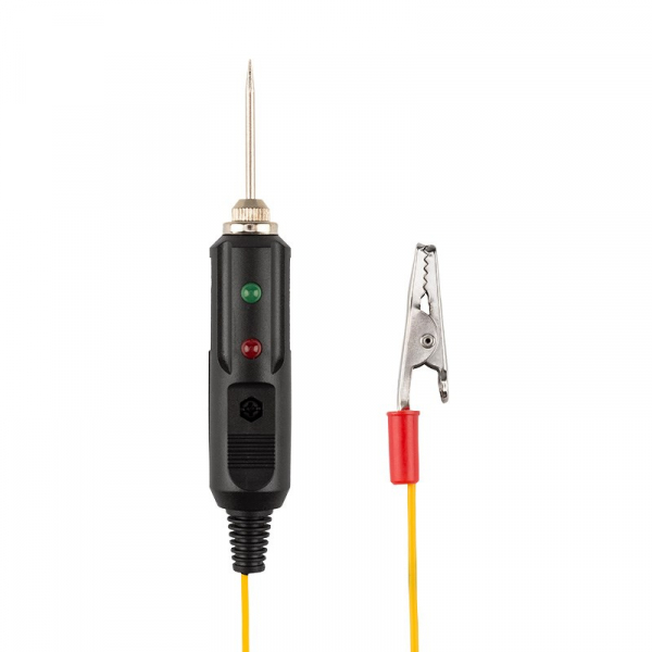 Позволяет определить полярность напряжения (+/-), выявить замыкание и обрыв проводки без необходимости размыкать проводку - за счет возможности ввести тонкую иглу непосредственно через изоляцию в проводку или проверить предохранители, лампочки и диоды. Корпус выполнен из ударопрочного пластика и снабжен проводом с зажимом типа «крокодил», светодиодным и звуковым индикатором. Питание: 3 х LR 41