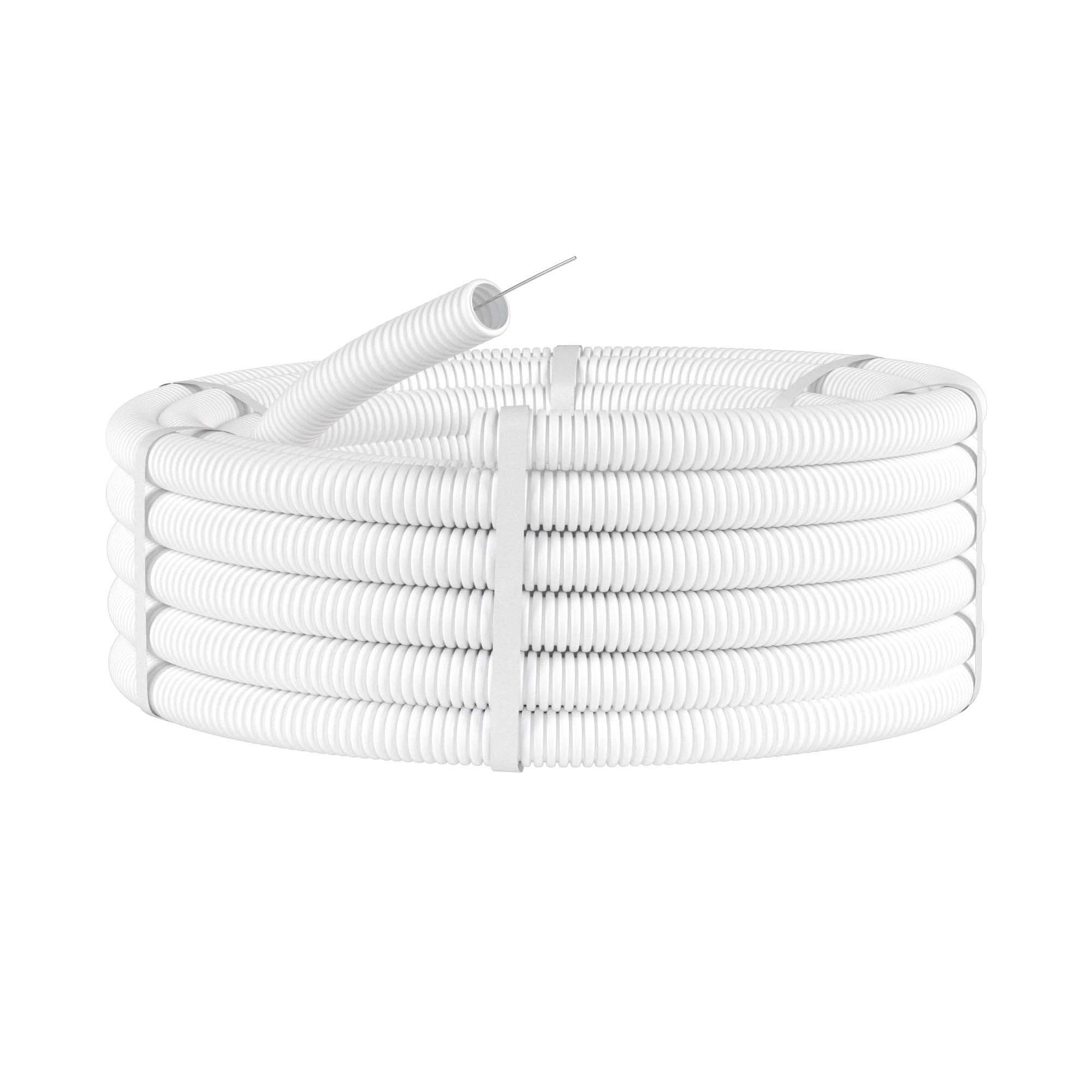Гибкая труба, не поддерживающая горение, имеет диаметр 50 мм. Для облегчения прокладки кабеля в комплект входит протяжка. Цвет - белый.