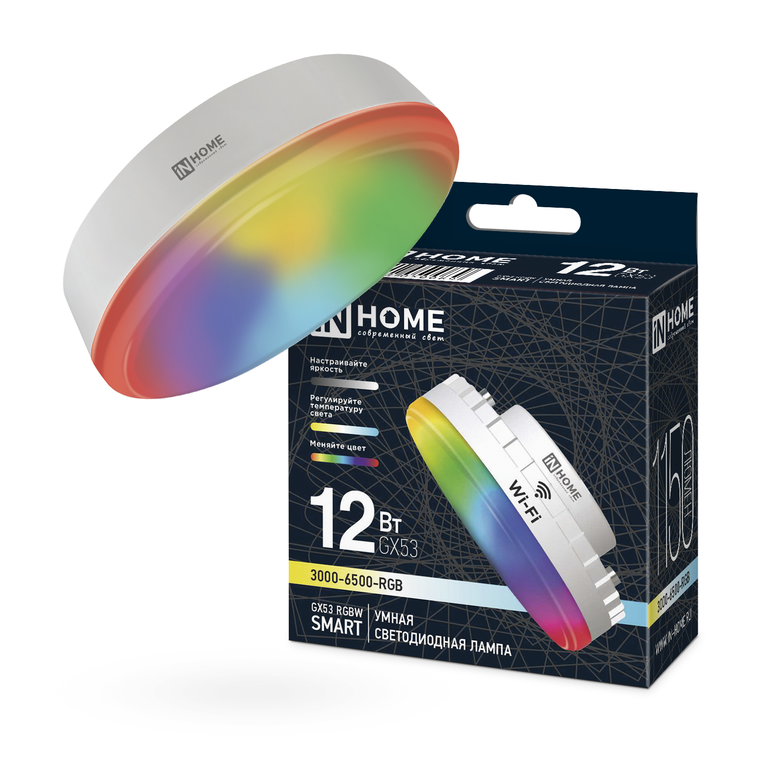Лампа светодиодная LED-GX53-RGBW-SMART 12Вт 230В Wi-Fi GX53 RGB-3000-6500К 1150Лм IN HOME